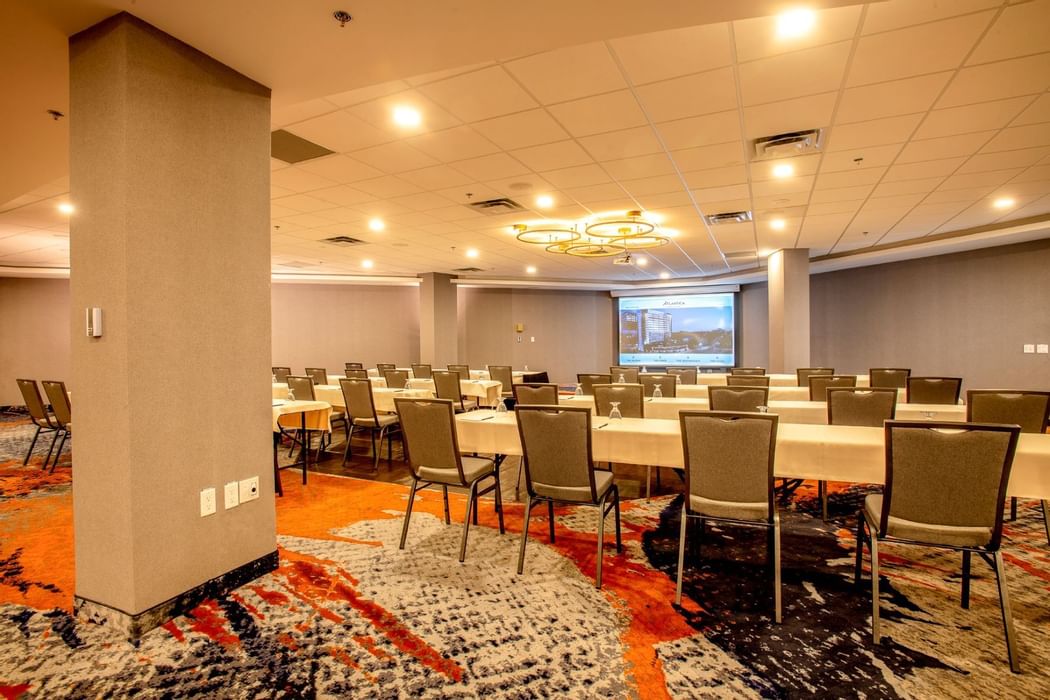 The Guild Hall is our largest meeting venue with enough comfortable space for a reception or theatre-style seating for 300 guests. For additional flexibility the Guild Hall can be separated into the Guild East and Guild West to facilitate your conference needs.